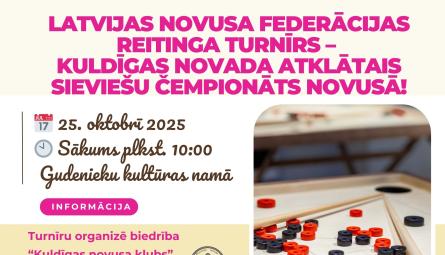Kuldīgā notiks Latvijas Novusa federācijas reitinga turnīrs – Kuldīgas novada atklātais sieviešu čempionāts novusā!